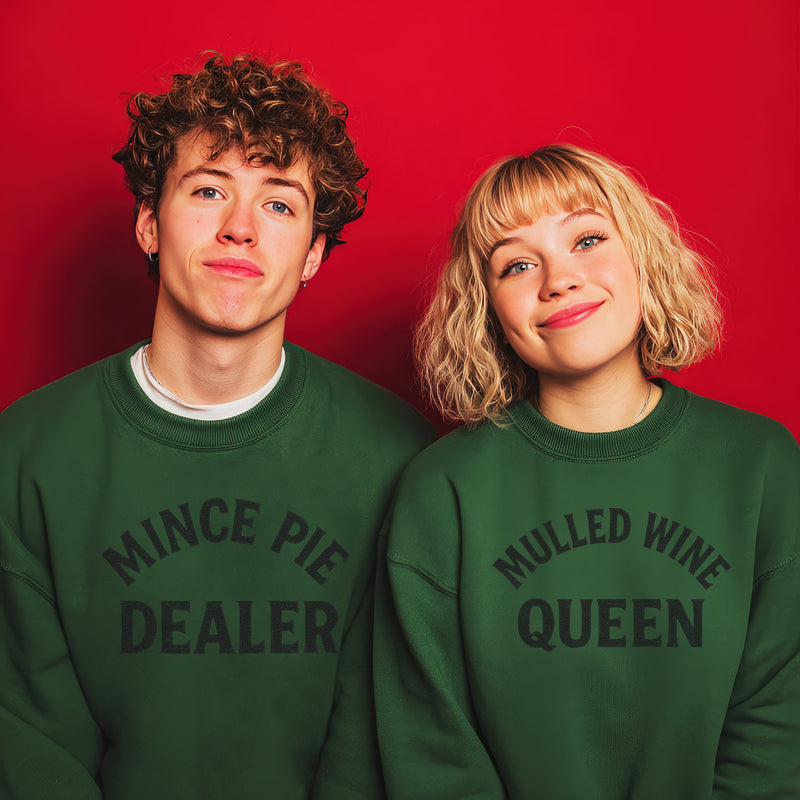 Minch Pie Dealer & Mulled Wine Queen - Christmas Matching - Christmas Sweaters - (Sold Separately)