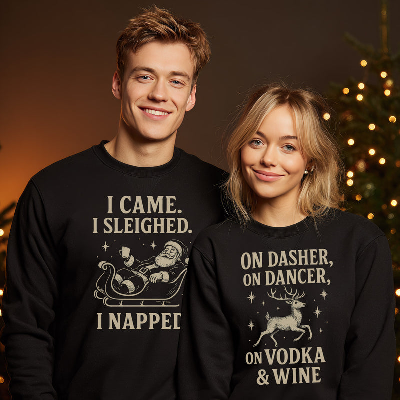 I Came I Sleighed I Napped & On Dasher On Dancer - Christmas Matching - Christmas Sweaters - (Sold Separately)