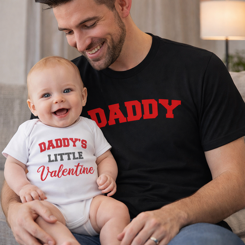 Daddy & Daddy's Little Valentine - Matching Set - Baby / Kids T-Shirt & Dad T-Shirt - (Sold Separately)