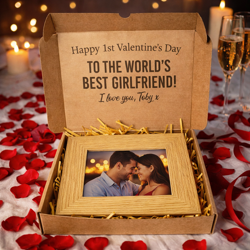 PERSONALISED First Valentine's Day with Date - Wooden Photo Frame with Photo