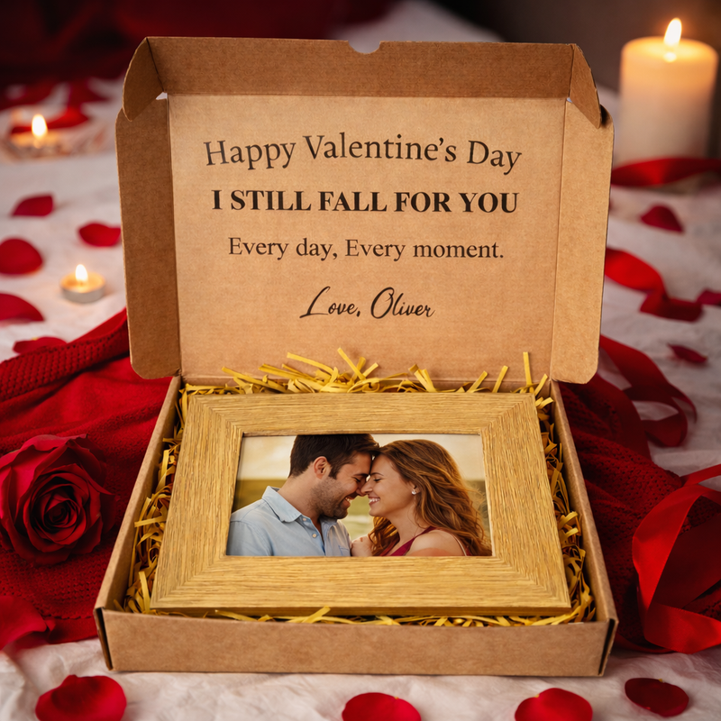 PERSONALISED Happy Valentine's Day I Still Fall For You - Wooden Photo Frame with Photo