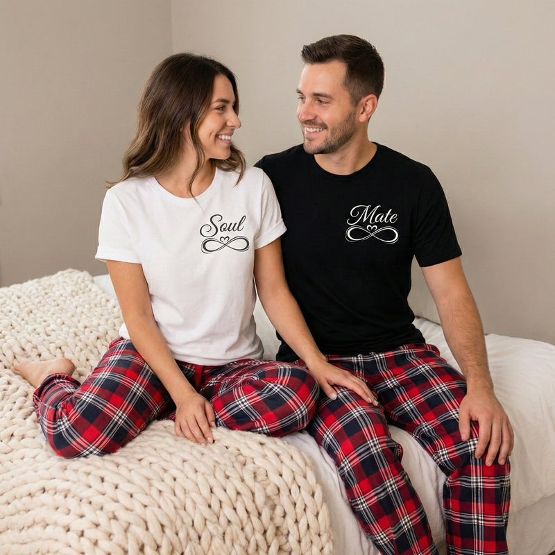 Soul Mate - Couples Matching Pyjamas - Top & Tartan PJ Bottoms - (Sold Separately)