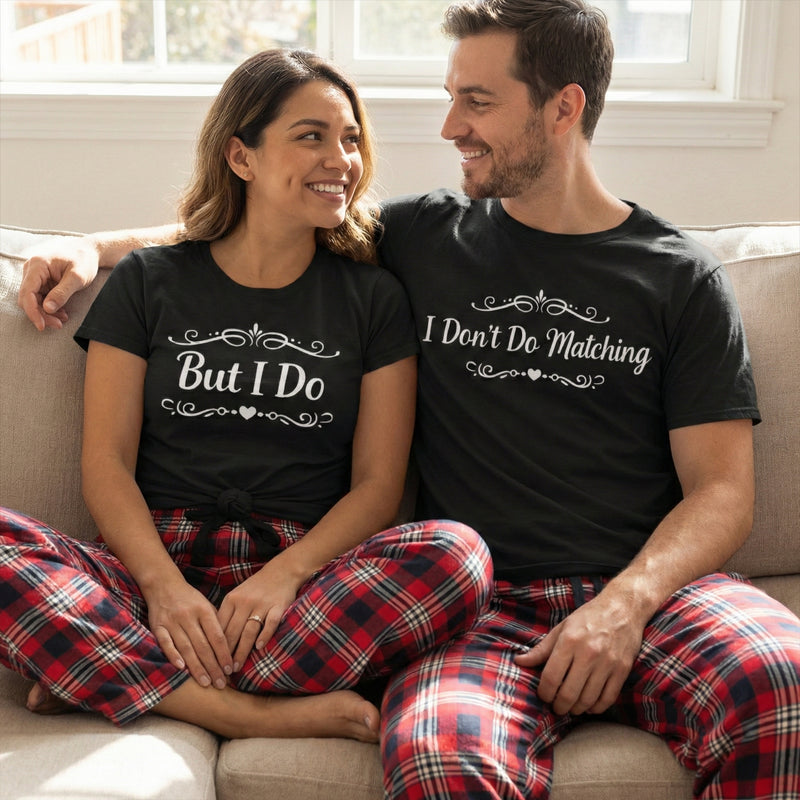I Don't Do Matching Fancy Design - Couples Matching Pyjamas - Top & Tartan PJ Bottoms - (Sold Separately)