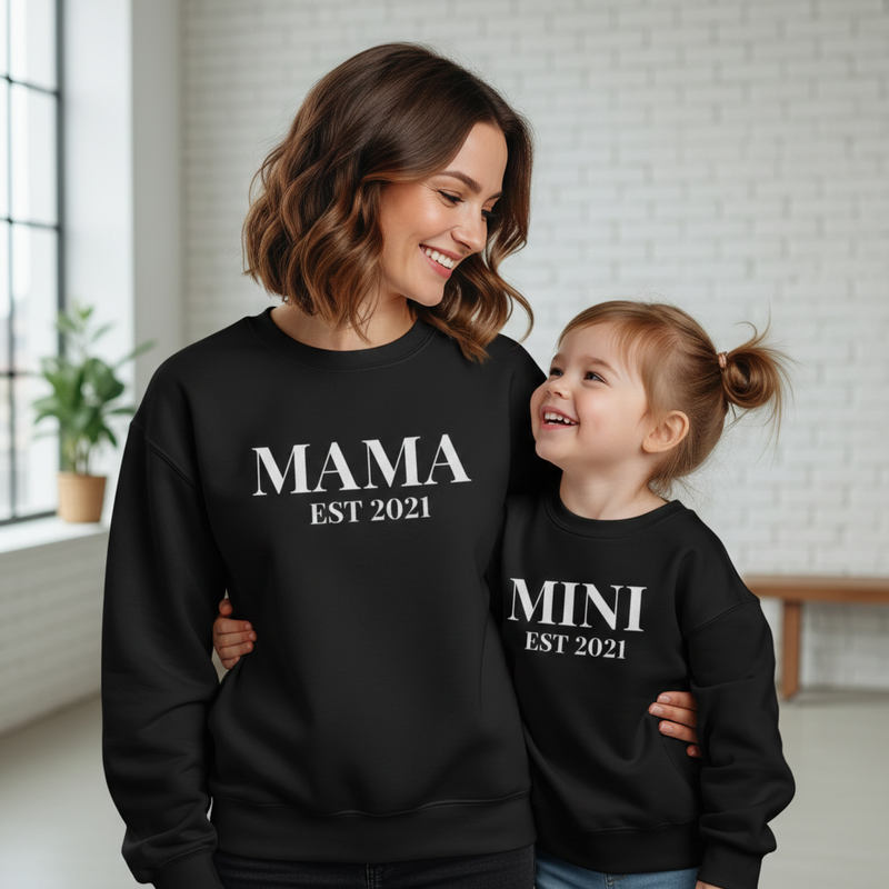 PERSONALISED Mama & Mini Est Date - All Styles - T-Shirt, Sweater or Hoodie - (Sold Separately)