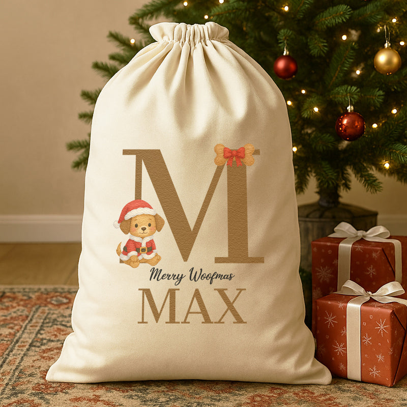 PERSONALISED Name Merry Woofmas Christmas Treats Santa Sack - Christmas Santa Sack