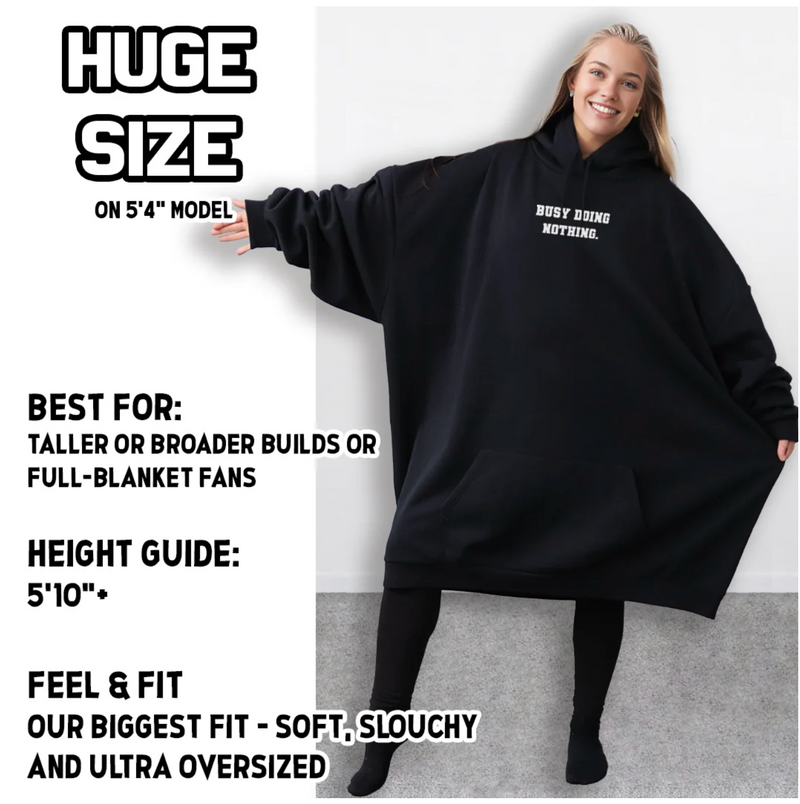 Additionally, the Huge Hood is designed to fit most body types with its Comfy Size sizing, making it a great gift option for friends and family members who love lounging and doing day to day activites in comfort. Its oversized fit adds to the relaxed vibe and allows for a more versatile styling option when you prefer the baggier look.